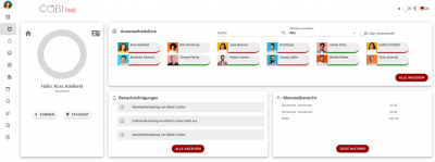 Diese Kurzanleitung beschreibt die Nutzung von COBI.time im Webbrowser (nicht Terminal). Verfügbar sind u. a. Zeitkorrekturen, Urlaubsanträge, Historie/Monatsübersicht sowie Aktivitäten-/Projektzeiten.
