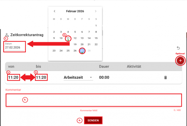 3. Zeitkorrekturantrag erstellen