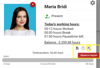 The supervisor also has the option of having a time report created from the employee. For this purpose, click on the icon ( highlighted in yellow) next to the balance in the information window.
